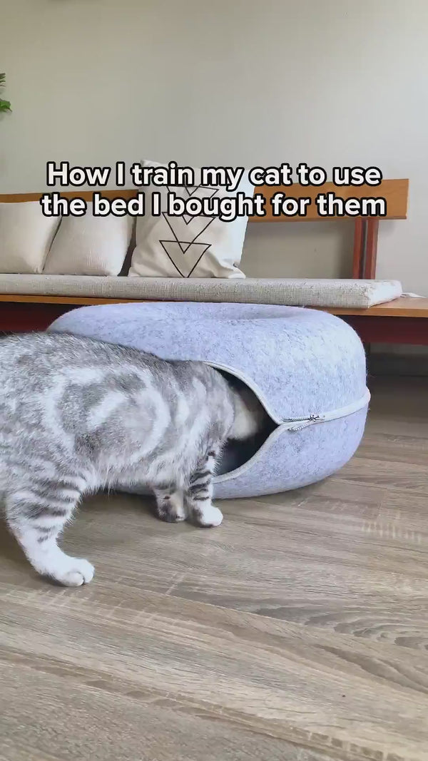 We made our Cattasaurus Cave with 100% felt because it's durable, cozy, and cats absolutely love it. But we want to be completely honest with you - just like people, some cats can be sensitive to synthetic materials.